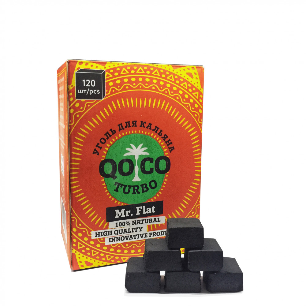 Уголь для кальяна кокосовый Qoco Turbo Mr. Flat (120 куб) - купить в Великом Новгороде